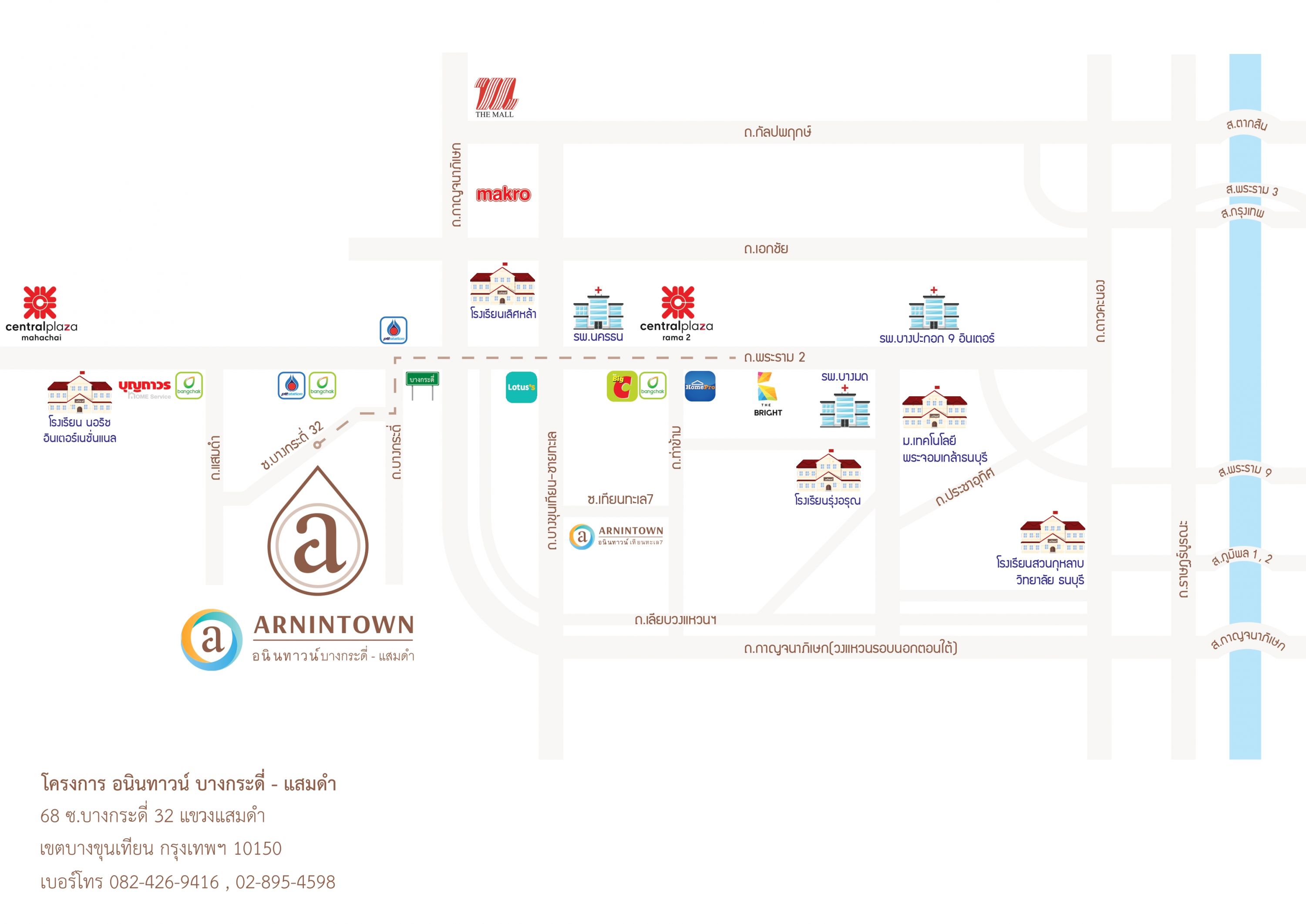 • เพียง 5 นาที จาก Central พระราม 2, Big C พระราม 2 , Home pro พระราม 2, Tesco Lotus พระราม 2 • ใกล้สิ่งอำนวยความสะดวก เช่น รพ.บางปะกอก 9, รพ. นครธน, รพ.บางมด และมหาวิทยาลัย พระจอมเกล้าธนบุรี, รร.รุ่งอรุณ, รร.เลิศหล้า, รร.สวนกุหลาบธนบุรี |